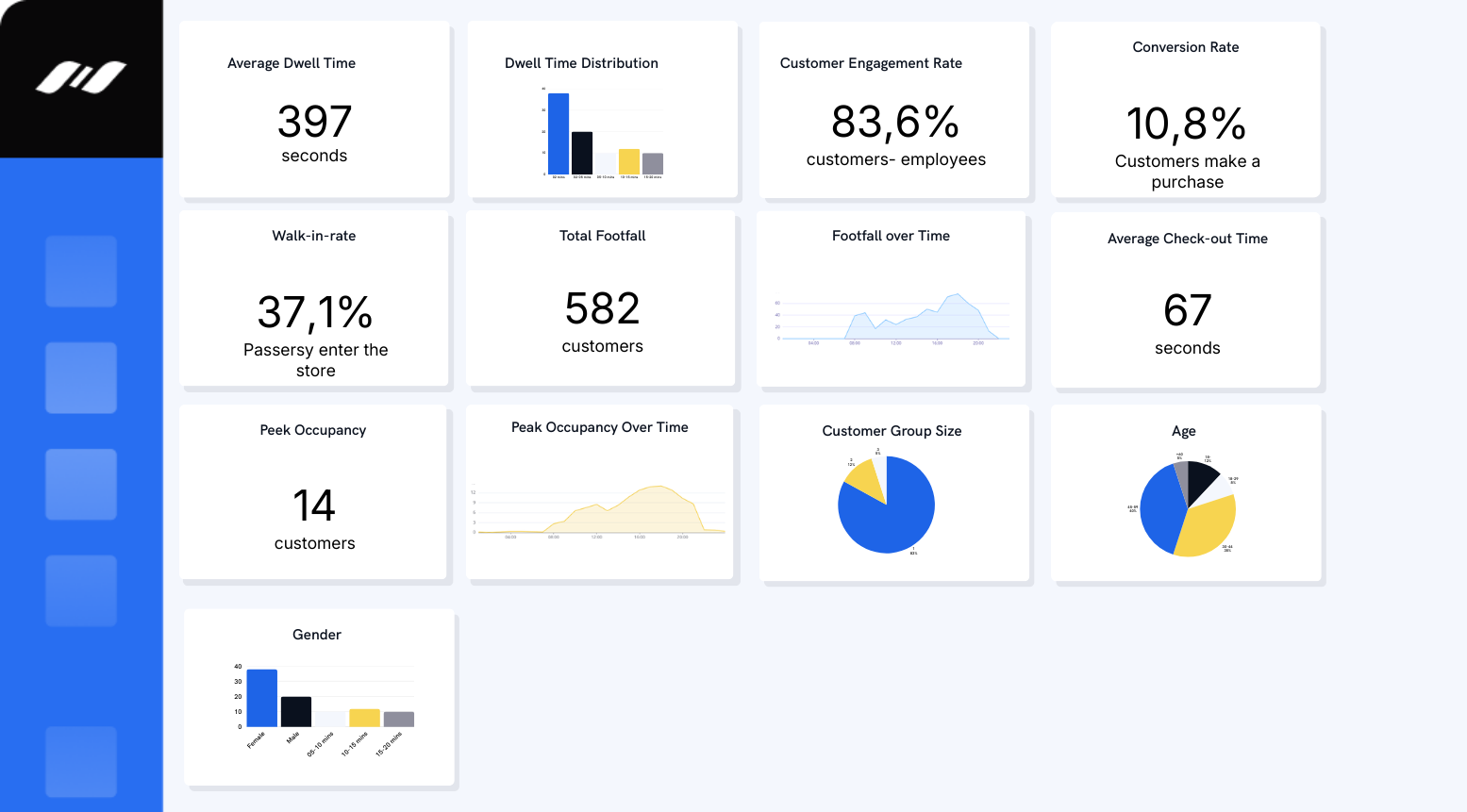 By analyzing real-time data on dwell times, movements on heatmaps and engagement, retailers can eliminate guesswork to refine store layouts and measure the true effectiveness of marketing campaigns. This 360-degree view in one dashboard allows retailers to optimize store performance and improve the overall shopping experience while maintaining 100% GDPR compliance.